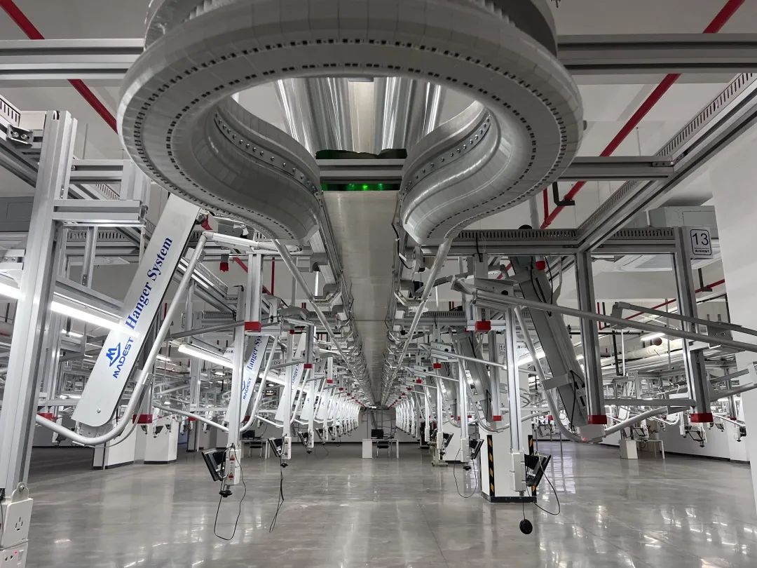 在生產(chǎn)環(huán)節,借助精益管理理念對生產(chǎn)場(chǎng)景進(jìn)行數字化轉型,摒棄“捆包流”模式,第一步實(shí)現電動(dòng)推筐的單件流生產(chǎn)模式,并開(kāi)發(fā)了一套鏈接材料檢驗(G2)、倉庫管理(WMS)、計劃排單、技術(shù)信息(GY)等各個(gè)模塊的生產(chǎn)執行數字化管理系統(MES+),經(jīng)過(guò)第三方檢測機構檢測,縫制生產(chǎn)工效提升36.7%。2022年又新建了一體化布局連續化生產(chǎn)的集約高效模式示范工廠(chǎng),將裁剪、大貨技術(shù)準備、縫制、后整、檢驗、包裝入庫等整合,建立連續不間斷的生產(chǎn)流程,整體形成一個(gè)品位高、管理好、視野新、高度數字化的示范工廠(chǎng),為后續的“智能工廠(chǎng)”申報奠定基礎。
